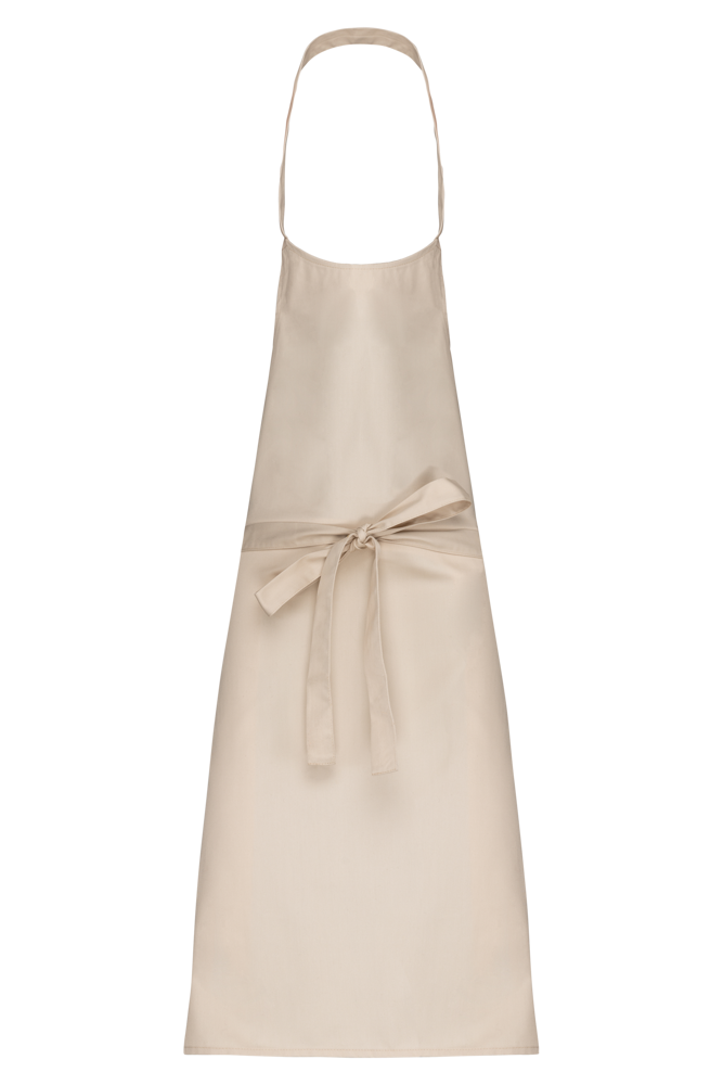 65% polyester / 35% katoen (Denim, Black Denim 65 % katoen / 35 % polyester). Thuis wassen op 60 °C. Metalen gesp aan de hals om de schort in lengte aan te passen. Zonder zak. Afmetingen: H 90 cm - B 76 cm.