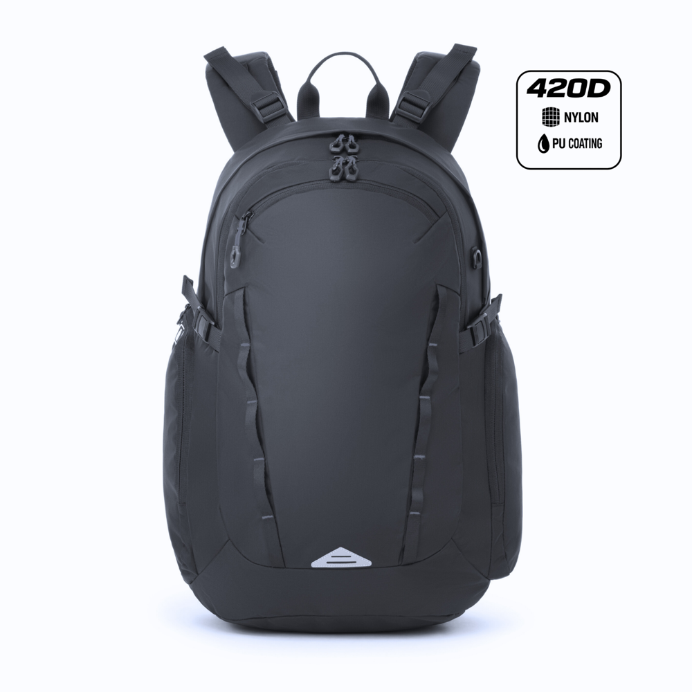 Een grote en duurzame sportieve rugzak van 420D-nylon met PU-coating. Voorzien van twee hoofdcompartimenten, een voorvak met rits, een bodemvak met regenhoes, een thermische zijvak en een zachte binnenvak voor een laptop. Verstelbare zij-, borst- en schouderbanden zorgen voor een comfortabele pasvorm, ondersteund door een geventileerd rugpaneel voor betere luchtcirculatie. Een bagageband maakt eenvoudige bevestiging aan een koffer mogelijk.