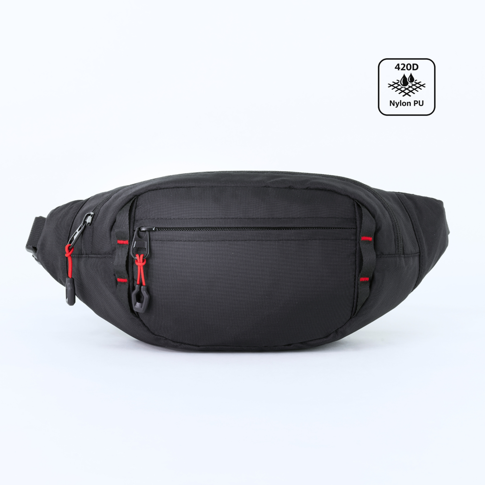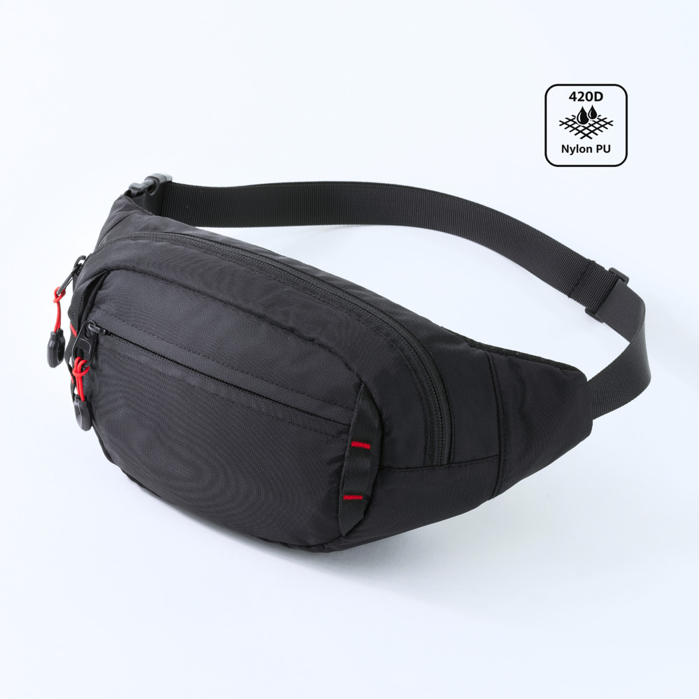 Een lichte en duurzame heuptas van 420D-nylon met PU-coating. Voorzien van een hoofdvak met rits, een voorvak met rits en een reflecterend elastisch koord voor extra zichtbaarheid. Het gevoerde mesh-rugpaneel zorgt voor comfortabel dragen tijdens elke activiteit. Ideaal voor reizen, hardlopen en dagelijkse benodigdheden.