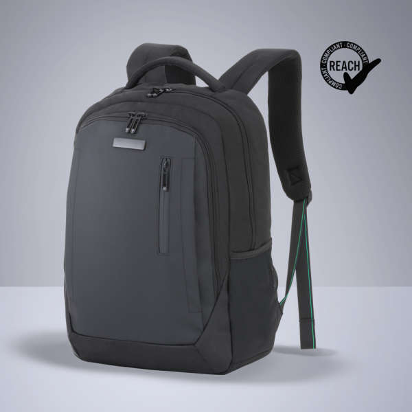 Een ruime en stijlvolle rugzak met een inhoud van 22 liter. Voorzien van twee hoofdcompartimenten, zijvakken van mesh, een waterdichte voorzak en een band aan de achterkant voor bevestiging aan een koffer. Webbing met reflecterende draad verhoogt de veiligheid, terwijl de hoogwaardige voering duurzaamheid garandeert. REACH-gecertificeerd.
