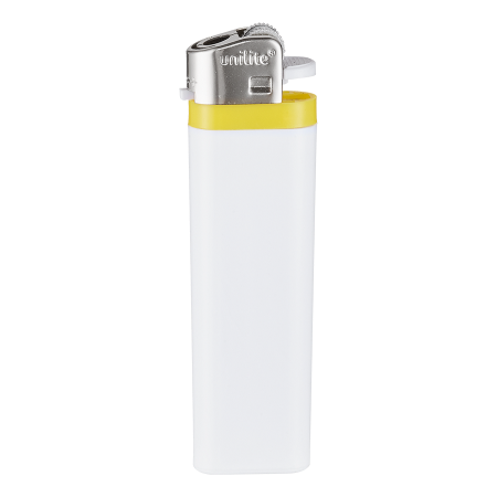 Witte wegwerpaansteker met gekleurde band.