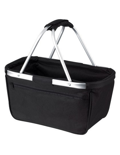 Mooi vormgegeven boodschappenmand met aluminium frame en ritsvakje aan de voorkant | opvouwbaar | Polyester 600D | Levering zonder decoratie/inhoud | Inhoud: ca. 20 liter