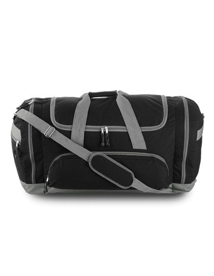 Polyester 600D | Sport- en reistas met drie voorzakken met rits | Handgreep en gevoerde schouderriem | Rits met trekker | Levering zonder inhoud / deco | Inhoud: ca. 95 liter